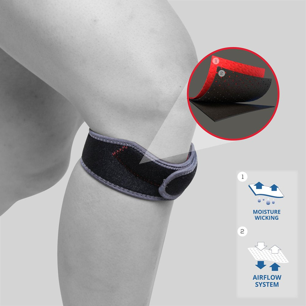 The Kedley Aero-Tech Neoprene Patella Strap is created with a comfortable and reinforced patella cup. It is designed to fit securely below the kneecap, applying pressure to the patella tendon. It assists with movement in the kneecap and reduces the force going through the kneecap and tendon.